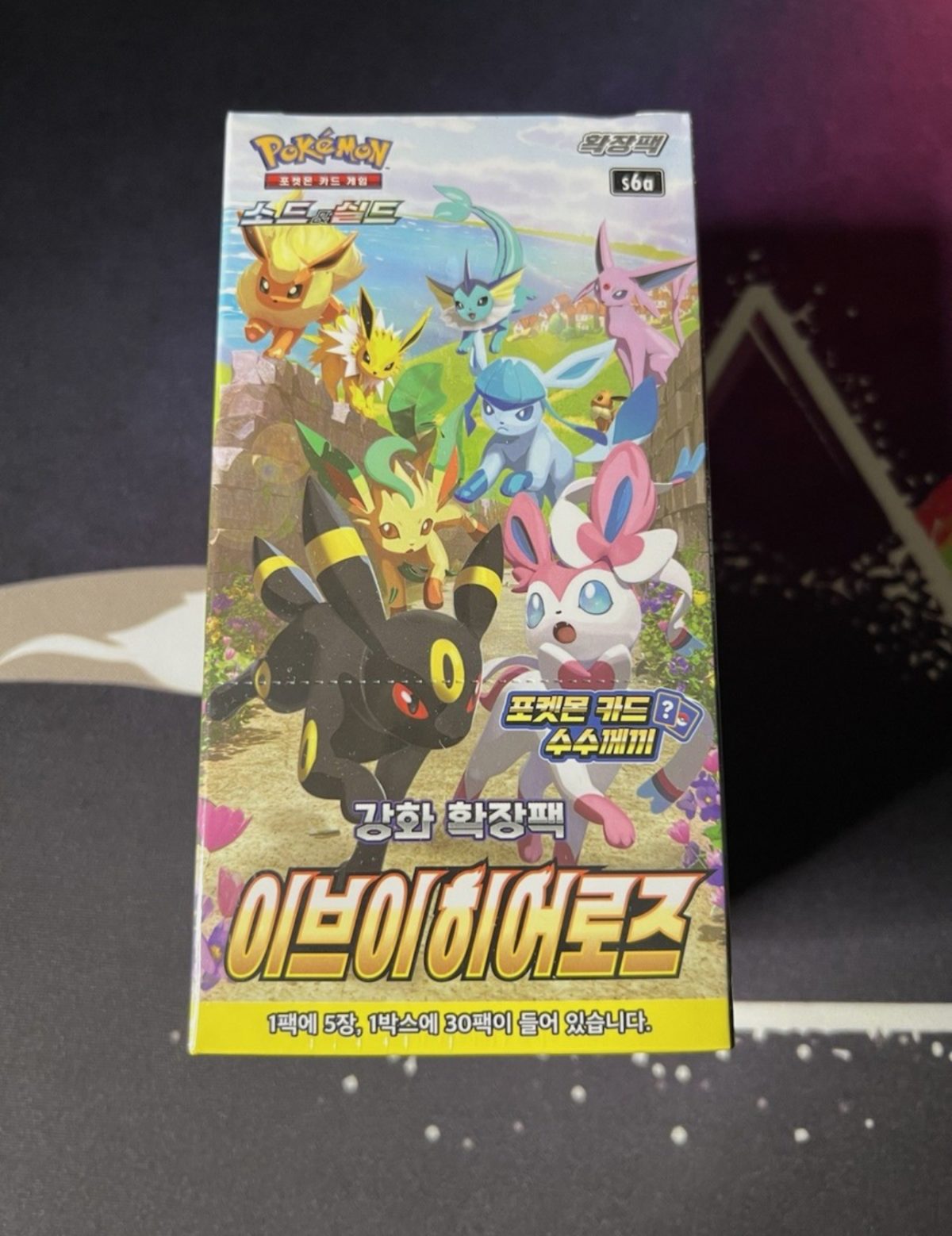 Step into the enchanting world of Eevee and its Evolutions with the Korean Pokémon TCG Eevee Heroes Booster Box (s6a). Part of the Sword & Shield series, this set is a must-have for collectors and players alike, especially those who adore the many evolutions of the beloved Eevee. With a beautiful variety of cards including Eevee V, Vaporeon VMAX, Jolteon VMAX, Umbreon VMAX, Espeon VMAX, and more, this set brings stunning artwork and competitive cards to the table.
